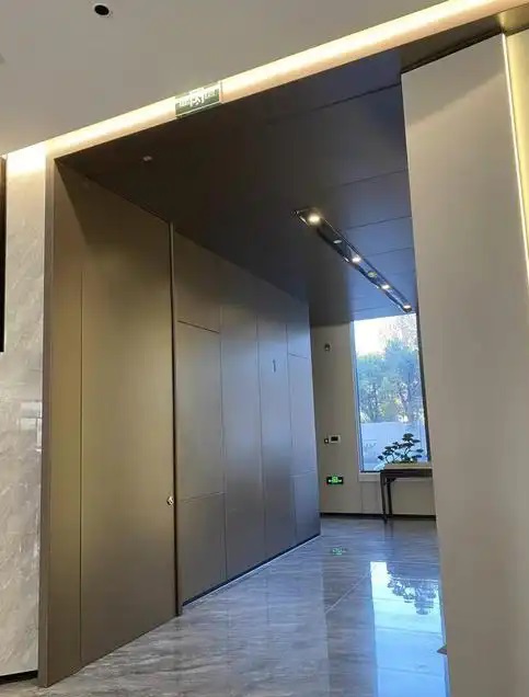 1、隱藏折疊防火門采用多扇折疊組合設(shè)計(jì),通過(guò)鉸鏈連接形成可收折的門扇單元,配備自動(dòng)關(guān)閉裝置,火災(zāi)時(shí)高溫觸發(fā)自動(dòng)閉門功能,無(wú)需人工操作。